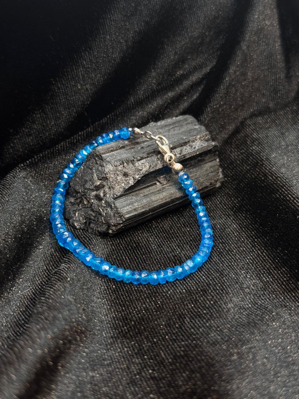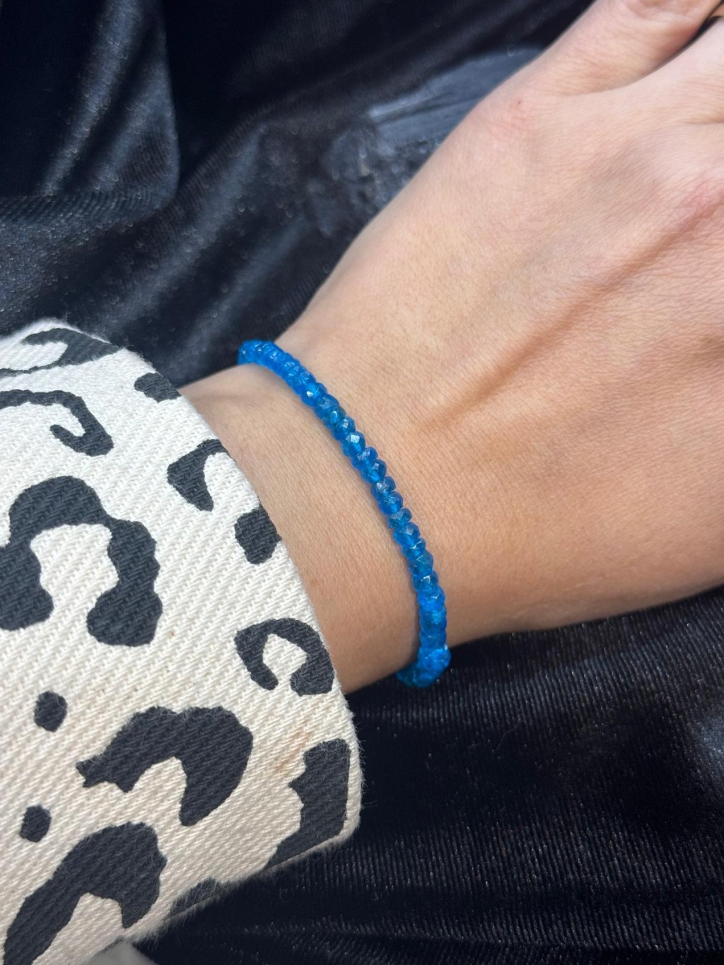 Bileklik formu sayesinde apatit taşı gün boyu ciltle temas halinde kalarak enerjinin daha dengeli şekilde hissedilmesine yardımcı olur. Günlük kullanımda sade ve şık bir görünüm sunarken, enerji çalışmaları ve meditasyon pratikleriyle birlikte de tercih edilebilir.