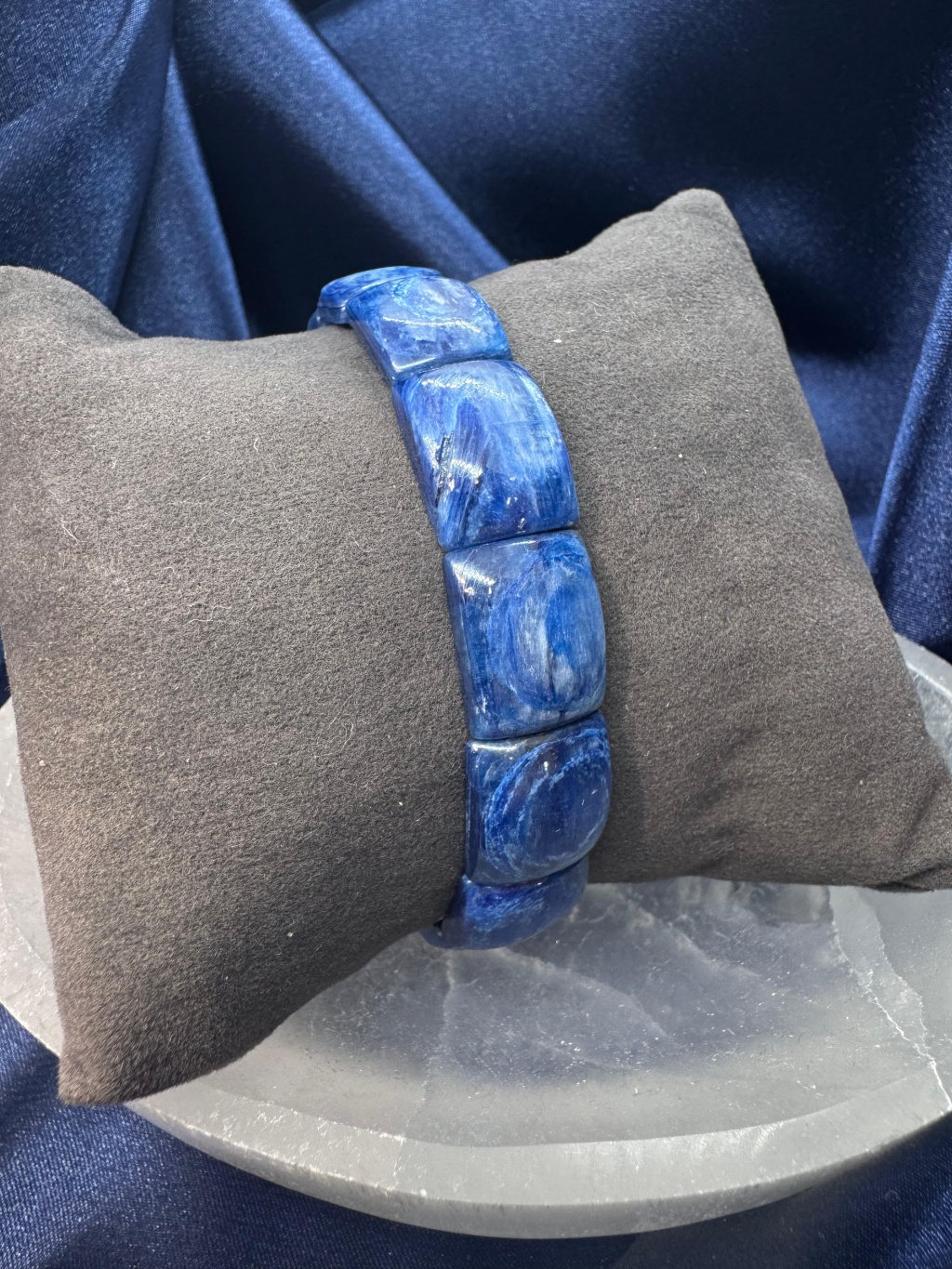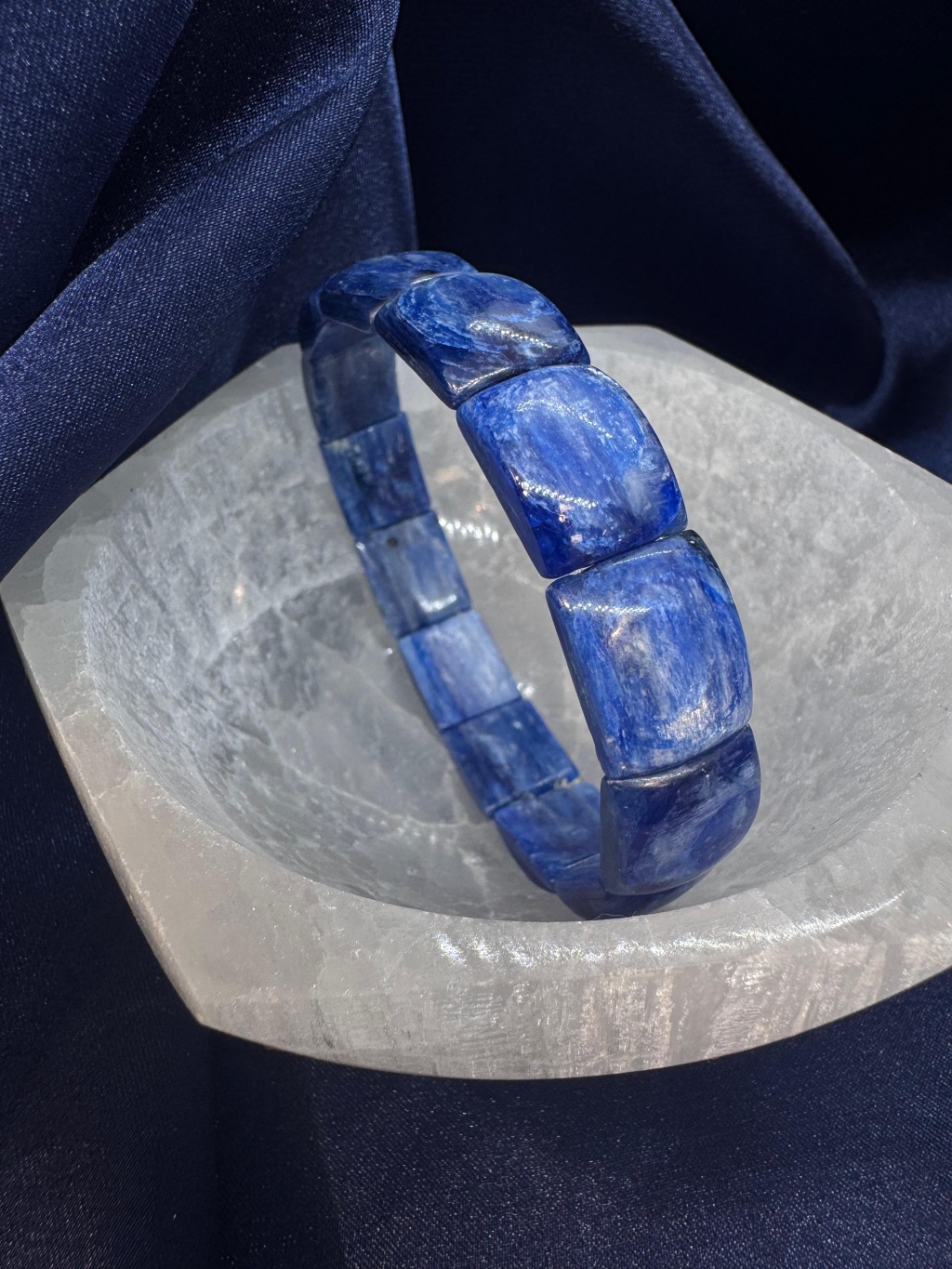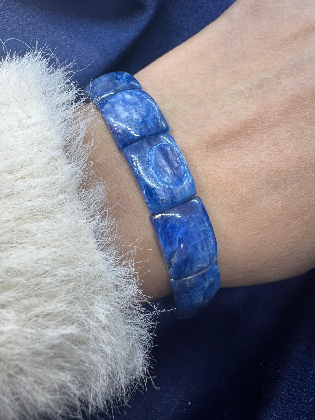 Kyanit taşı; zihinsel berraklık, iletişim gücü ve enerji akışını dengeleme temalarıyla ilişkilendirilir. Özellikle düşünceyi netleştirmeye, ifade gücünü artırmaya ve enerji alanında blokaj oluşmadan akış sağlamaya yardımcı olduğu kabul edilir. Günlük kullanımda hem stil tamamlayıcı hem de enerji çalışmaları için destekleyici bir bileklik olarak tercih edilir.