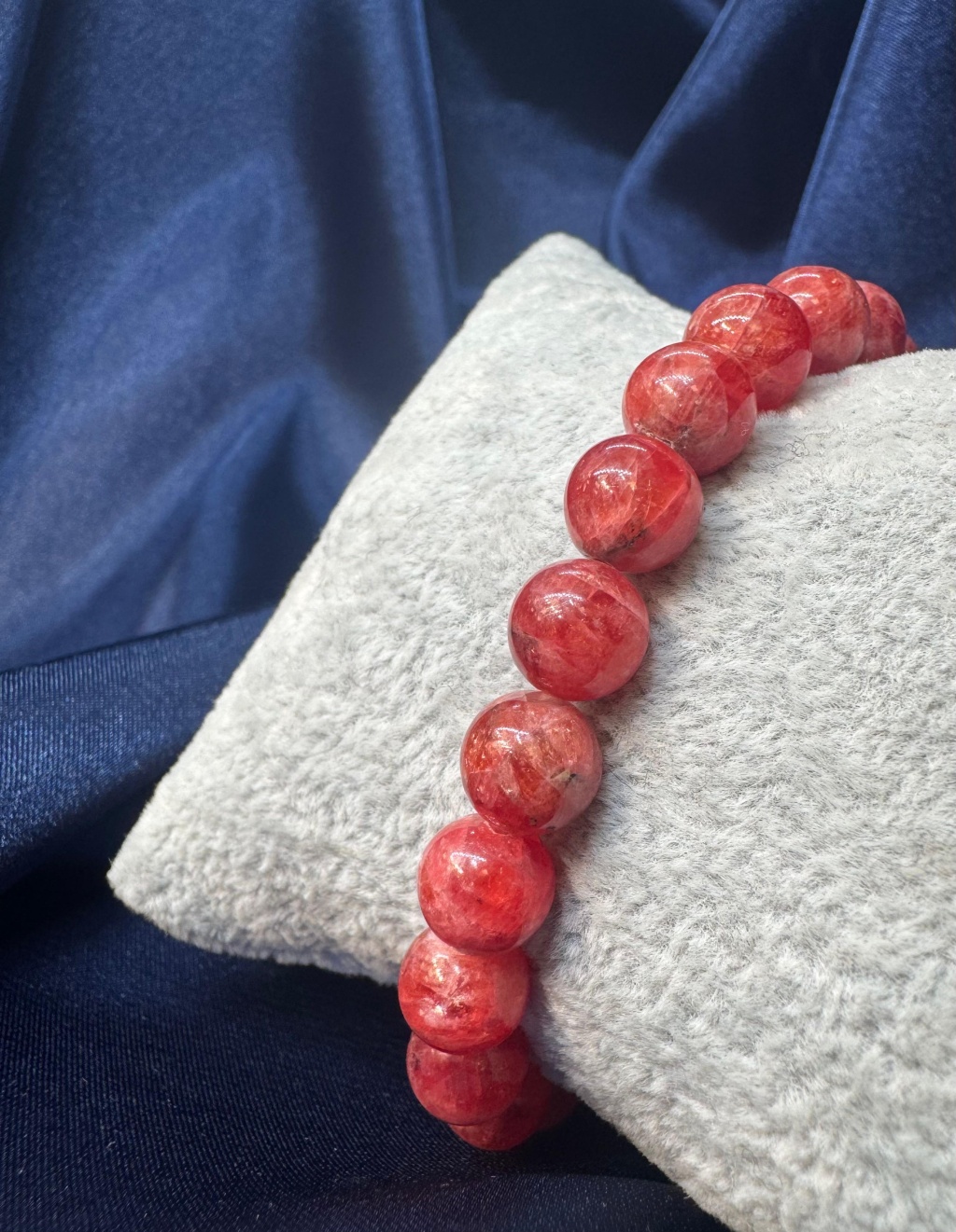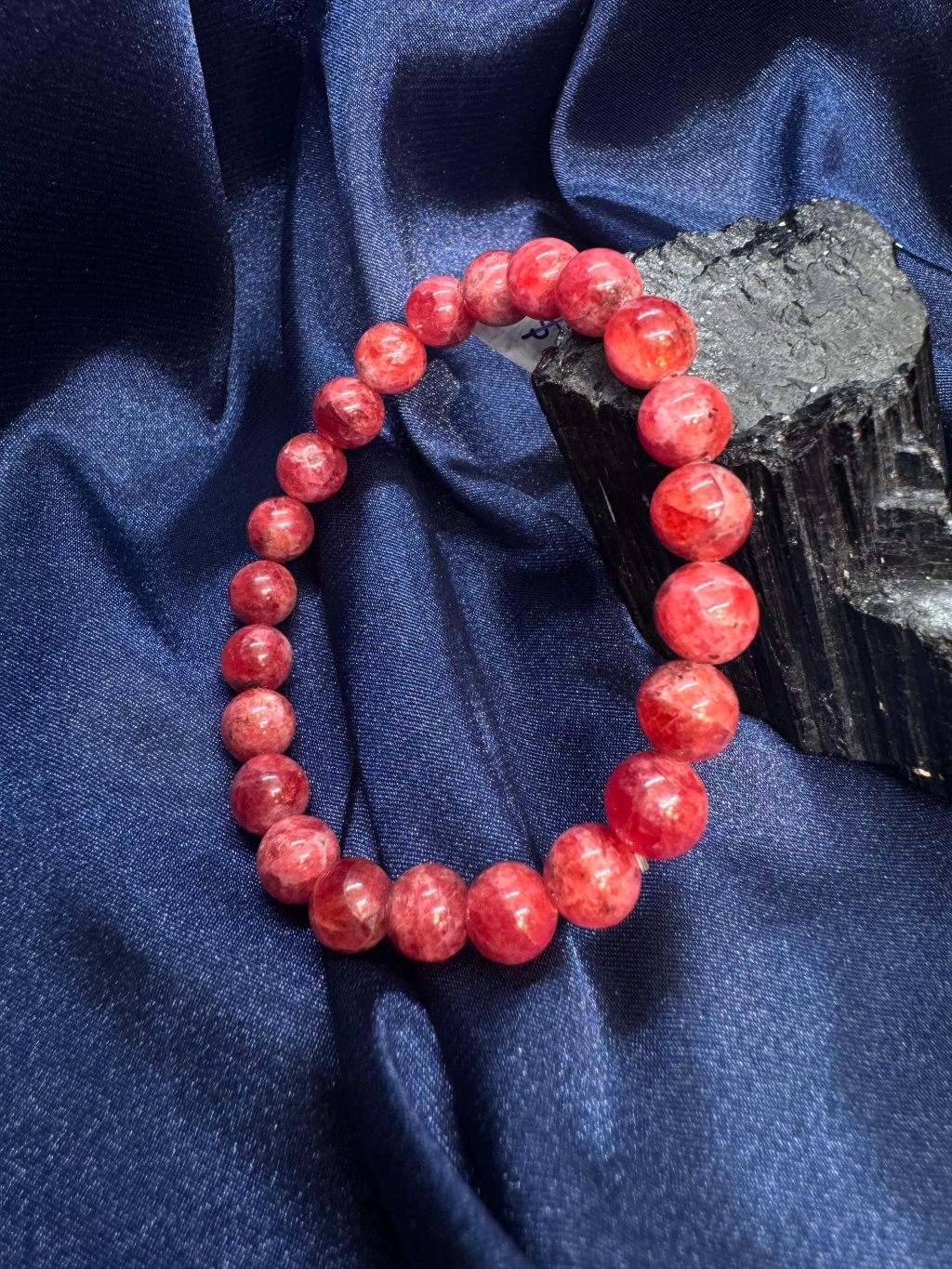 7A Kalite Rodonit Doğal Taş Bileklik 8-9 mm, yüksek kalite rodonit taşlarından üretilmiş, hem estetik hem de enerjisel açıdan güçlü bir doğal taş takıdır. 7A kalite ifadesi; taşların renk doygunluğu, damar yapısı ve parlaklık açısından üst seviye seçildiğini belirtir. 8-9 mm boncuk ölçüsü, bileklikte dolgun ve dikkat çekici bir görünüm sunar.