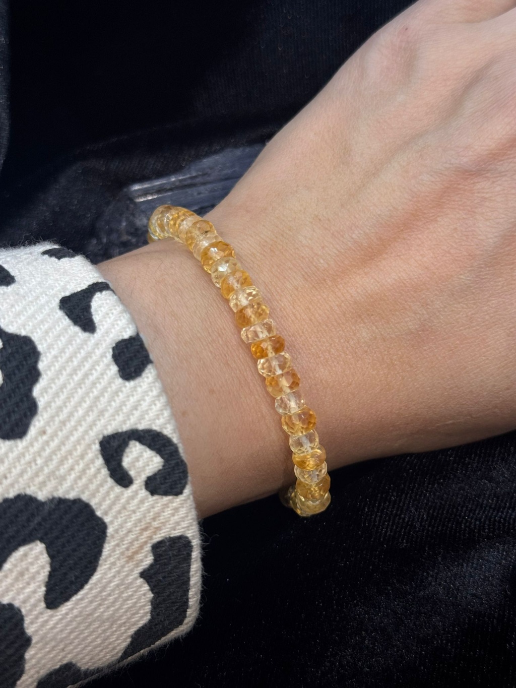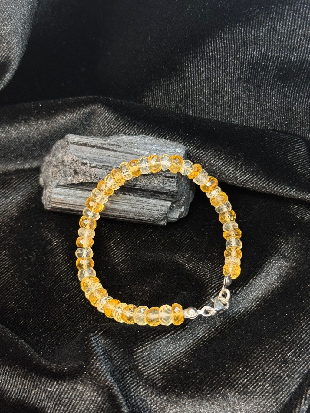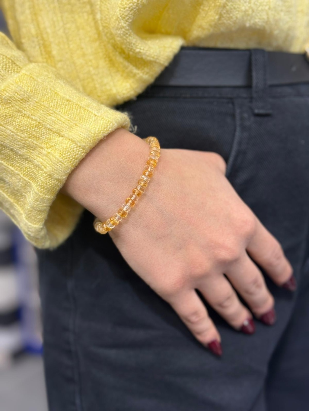 7A kalite sitrin taşları; renk doygunluğu, ışık geçirgenliği ve pürüzsüz yüzey yapısı bakımından üst segmentte yer alır. Bu sayede bileklik, hem görsel açıdan daha parlak bir duruş sergiler hem de enerjisel çalışmalarda daha net bir frekans sunduğu düşünülür.