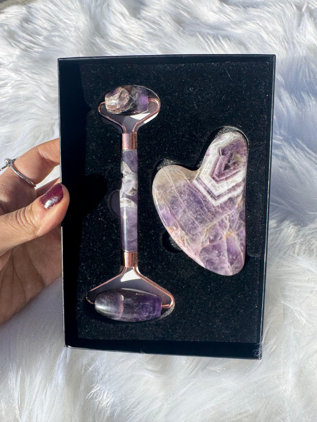 Ametist Taşı Face Roller ve Gua Sha Masaj Aleti Seti, yüz masajı ve cilt bakım rutinlerini hem fiziksel hem de enerjisel açıdan desteklemek amacıyla hazırlanmış özel bir doğal taş setidir. Set içerisinde yer alan face roller ve gua sha, yüzün farklı bölgelerine uygun kullanım imkânı sunarak dengeli ve bütüncül bir masaj deneyimi sağlamayı amaçlar.
