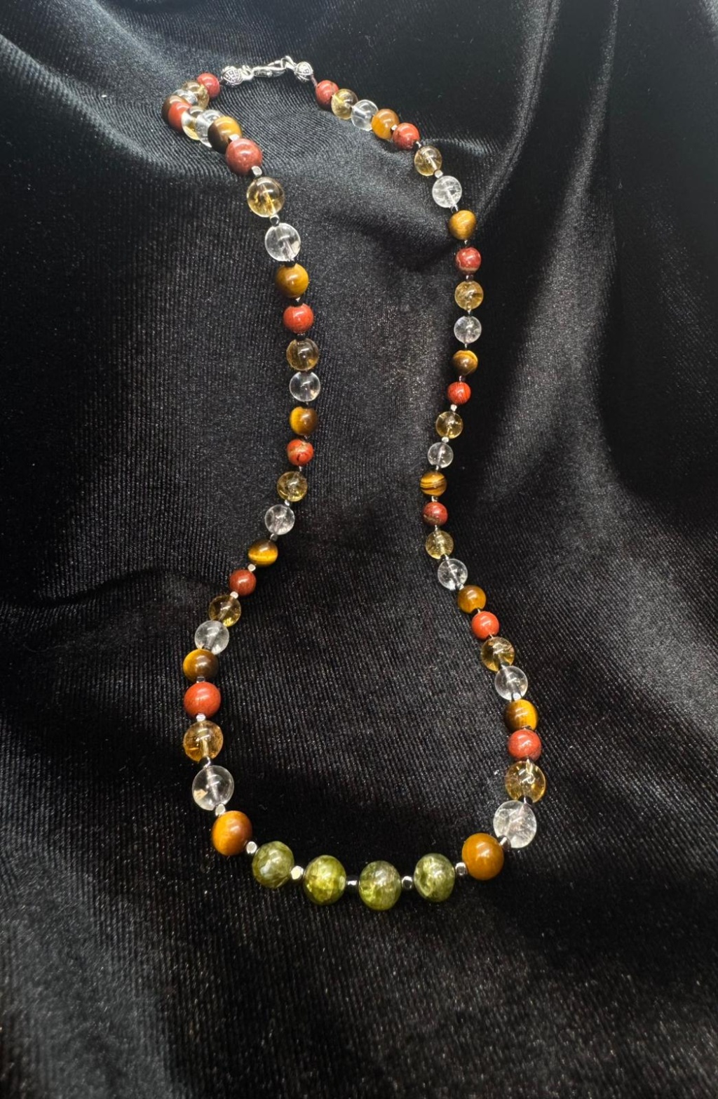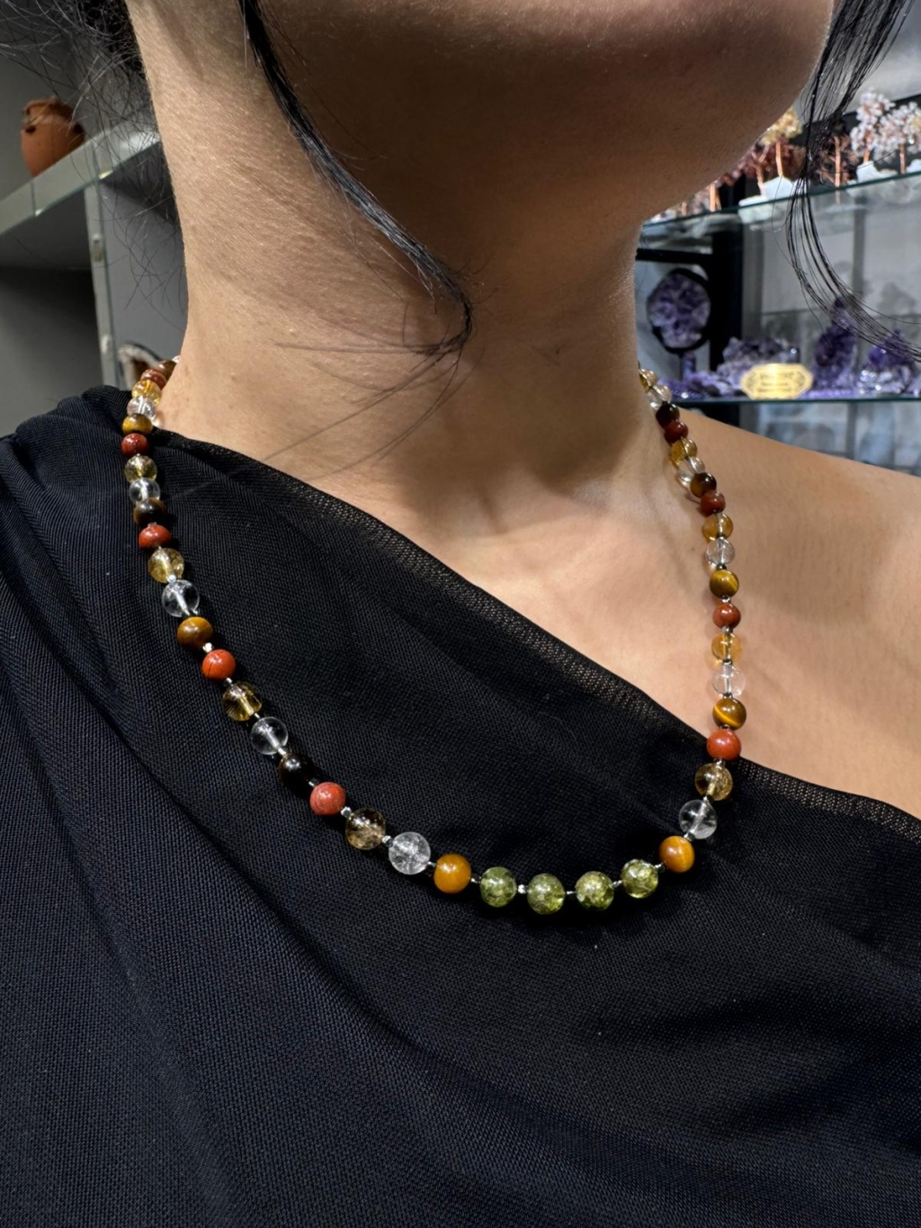 Ürün görselleri temsili olup, doğal taşların yapısı gereği taş dizilimi, renk tonları ve desenlerde farklılıklar görülebilir. Her kolye doğal ve kendine özgüdür.