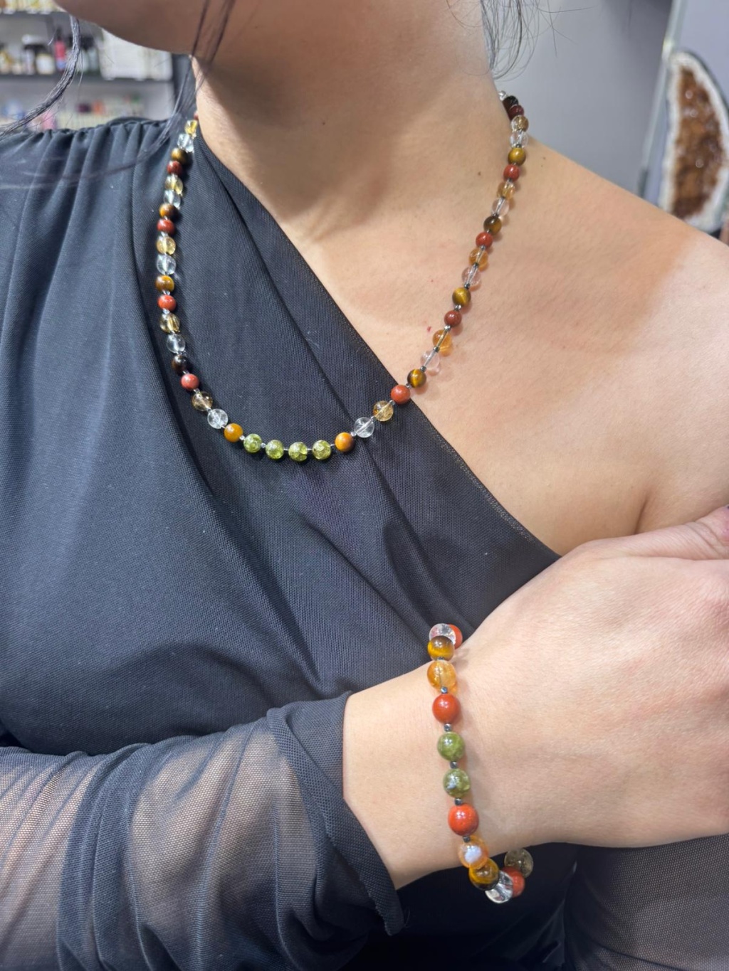 Ürün görselleri temsili olup, doğal taşların yapısı gereği taş dizilimi, renk tonları ve desenlerde farklılıklar görülebilir. Her bileklik ve kolye doğal ve kendine özgüdür.