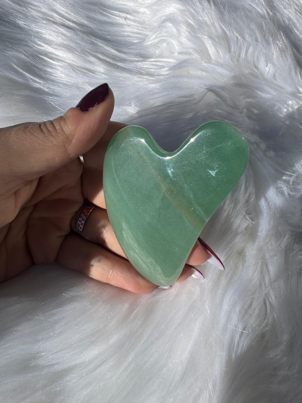 Ürün görselleri temsili olup, doğal taşın yapısı gereği renk tonları, damar yapısı ve formda farklılıklar görülebilir. Her Aventurin Gua Sha doğal ve kendine özgüdür.