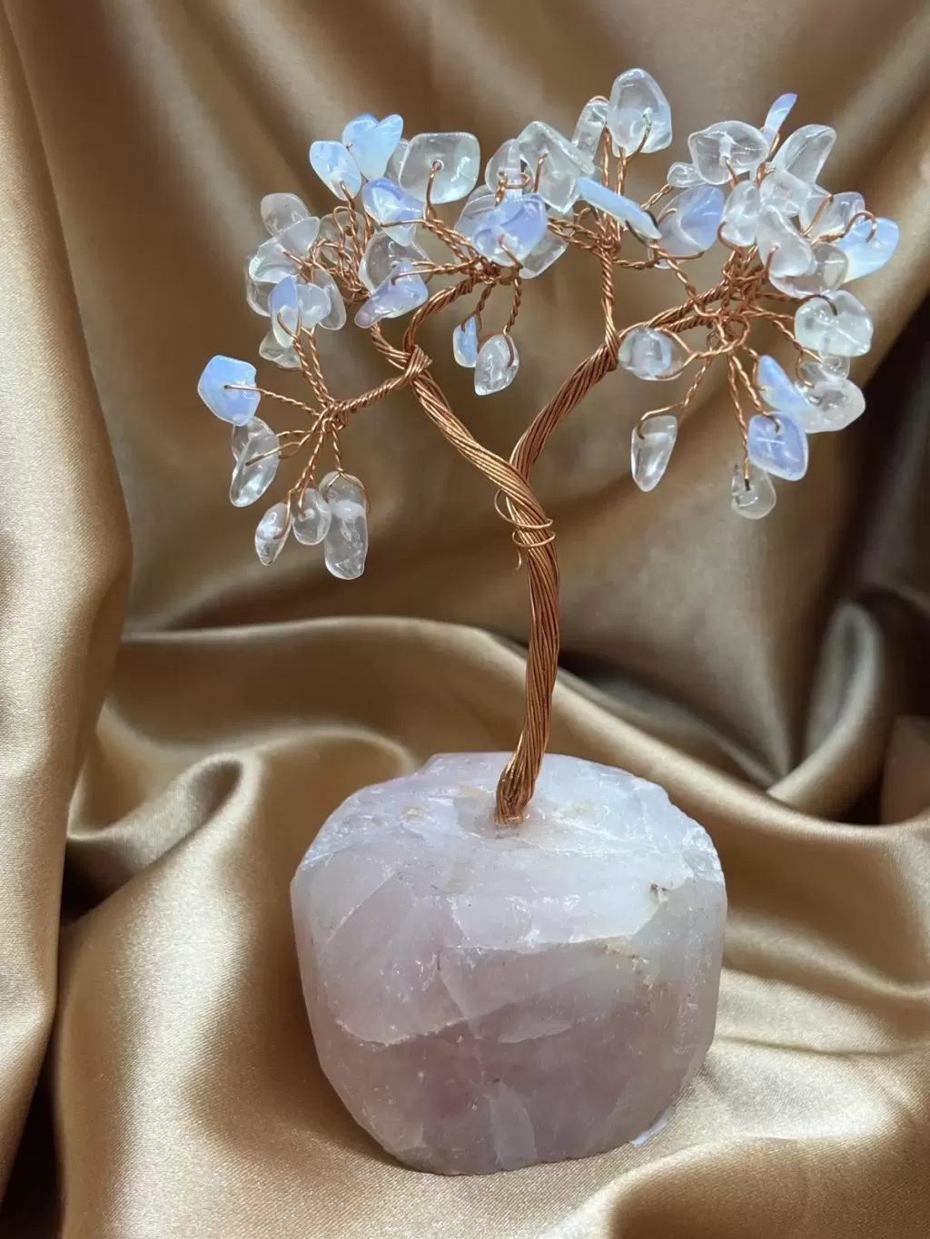 Ay Taşı ve Pembe Kuvars Zemin Doğal Taş Ağaç Obje; sevgi, sezgi ve dişil enerji frekansını bir araya getiren özel bir spiritüel dekoratif objedir. Üst kısımda yer alan Ay Taşı dalları sezgisel farkındalığı ve duygusal akışı desteklerken, alt kısımda bulunan Pembe Kuvars zemin sevgi ve kalp enerjisini sabitler.