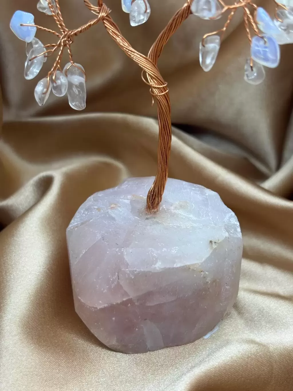 Ağaç formu; köklenmiş sevgi ve büyüyen duygusal bilinç enerjisini temsil eder. Pembe Kuvars zemin sevgi frekansını sabitlerken, Ay Taşı dalları sezgisel akışı yukarı doğru genişletir. Bu yapı hem kalp hem sezgi alanında bütünlük sembolüdür.