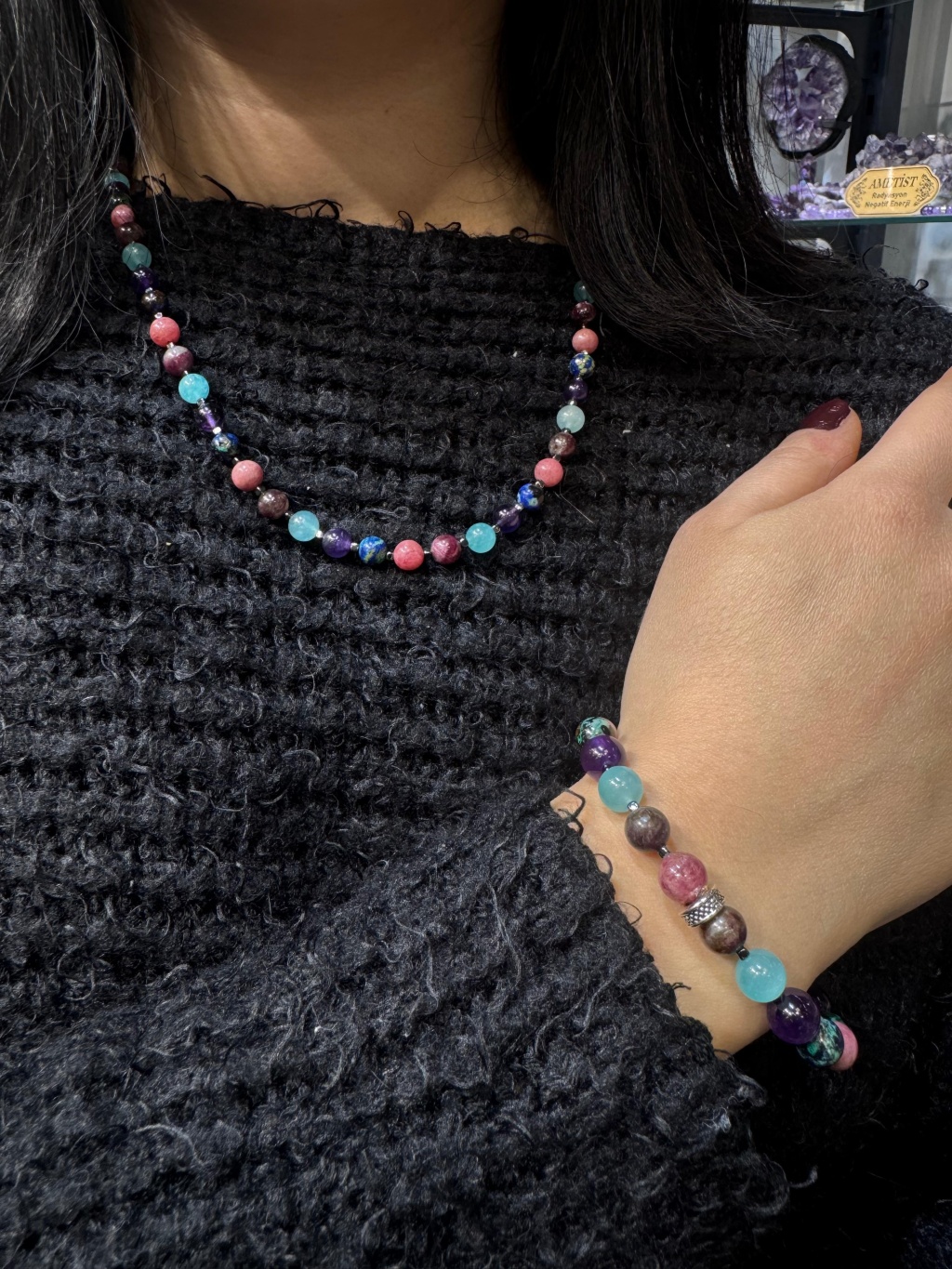 Ürün görselleri temsili olup, doğal taşların yapısı gereği taş dizilimi, renk tonları ve desenlerde farklılıklar oluşabilir. Her bileklik ve kolye doğal ve kendine özgüdür.