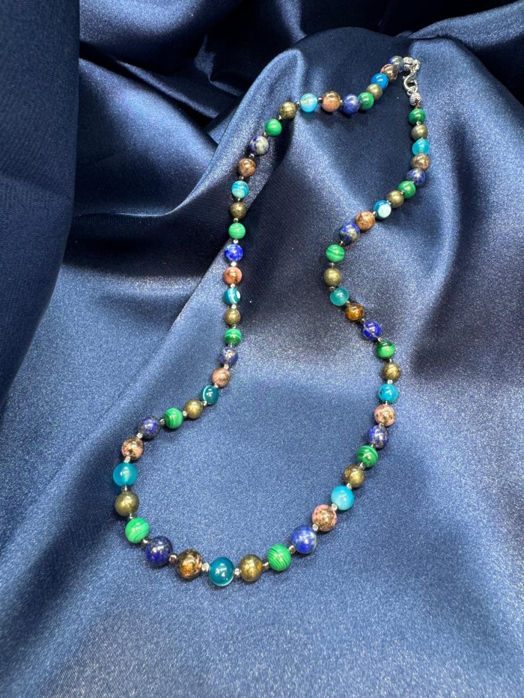 Ürün görselleri temsili olup, doğal taşların yapısı gereği taş dizilimi, renk tonları ve desenlerde farklılıklar oluşabilir. Her kolye doğası gereği benzersizdir.