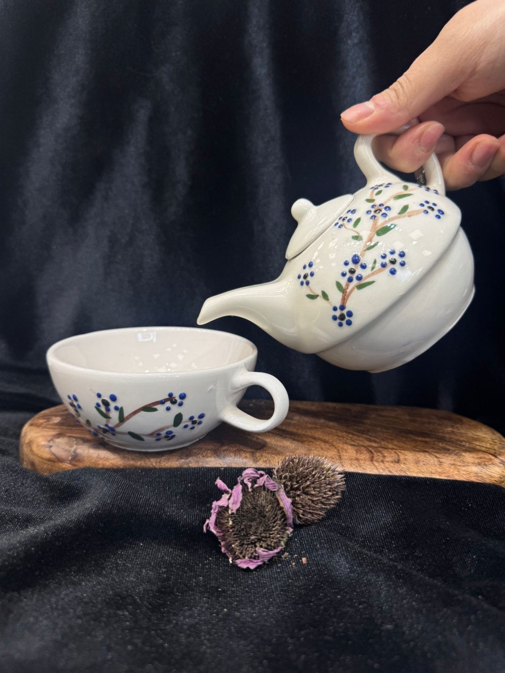 Set, bitki çayları, şifalı karışımlar ve doğal çaylar için ideal formdadır. Demlik ve fincanın bir arada kullanımı, içeceğin enerjisinin dağılmadan sunulmasına yardımcı olur. Doğal tonlar ve yumuşak desenler, görsel olarak sakinlik hissi verirken, kullanım sırasında zihinsel rahatlama sağlamaya katkı sunar.