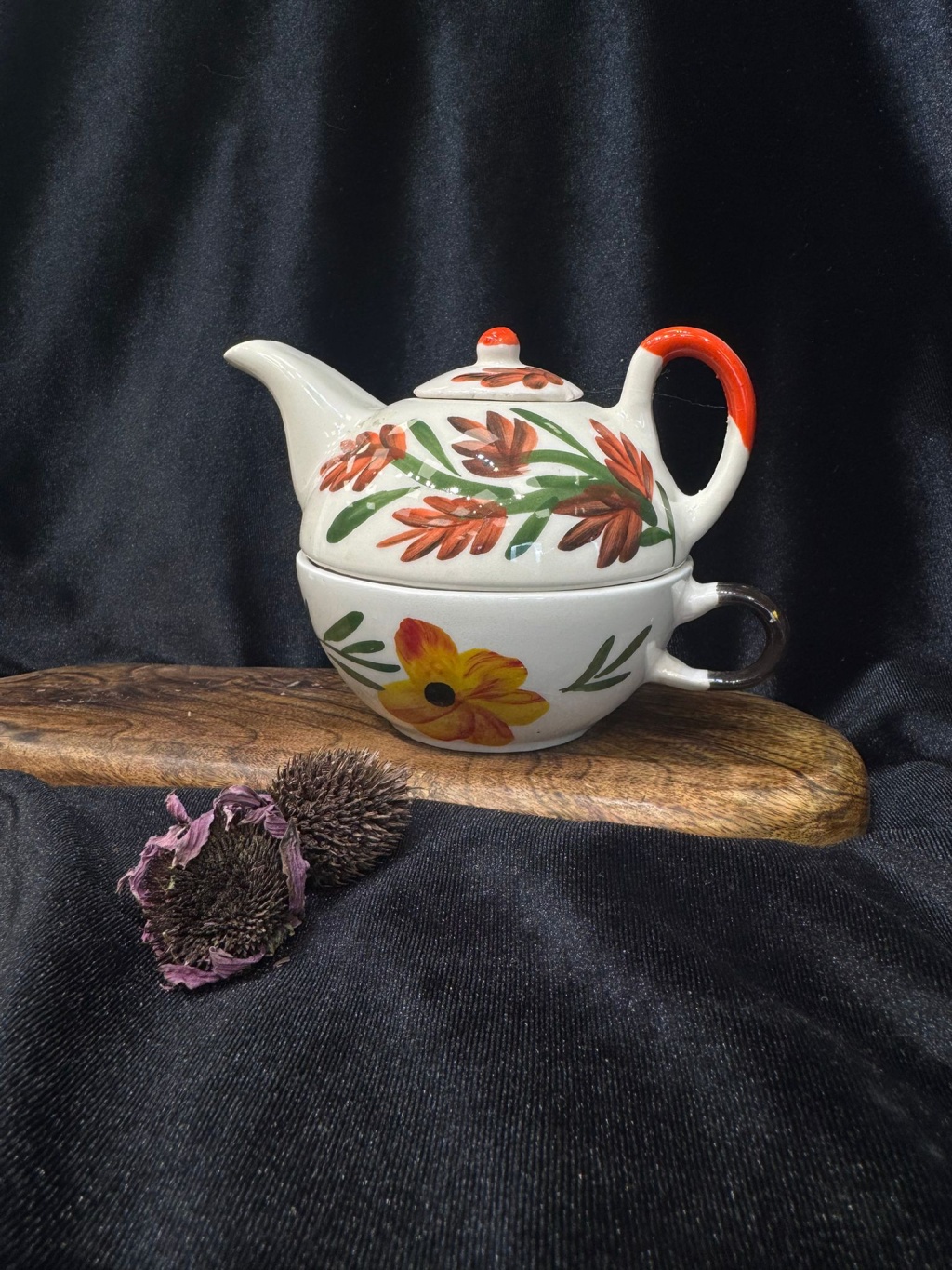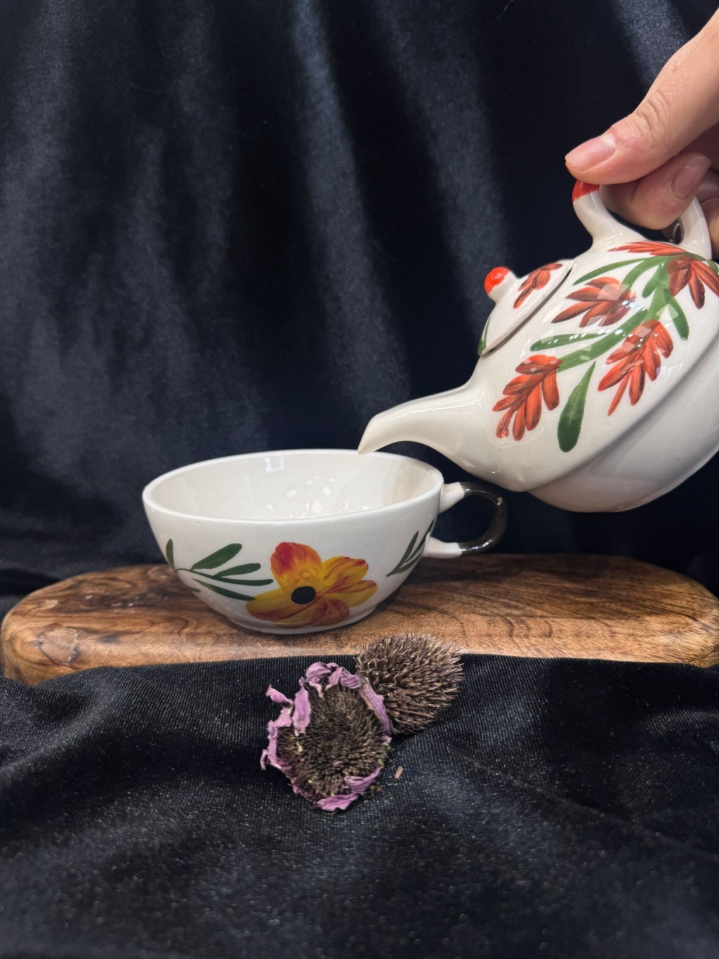 Set, bitki çayları, şifalı karışımlar ve doğal çaylar için ideal formdadır. Demlik ve fincanın bir arada kullanımı, içeceğin enerjisinin dağılmadan sunulmasına yardımcı olur. Doğal tonlar ve yumuşak desenler, görsel olarak sakinlik hissi verirken, kullanım sırasında zihinsel rahatlama sağlamaya katkı sunar.
