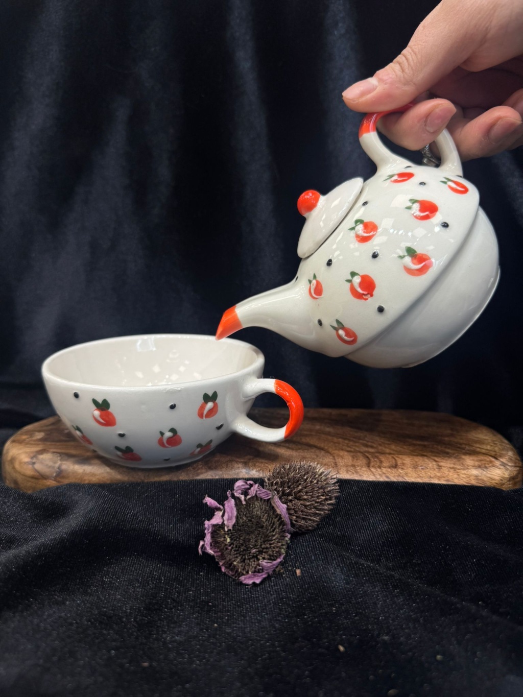 Set, bitki çayları, şifalı karışımlar ve doğal çaylar için ideal formdadır. Demlik ve fincanın bir arada kullanımı, içeceğin enerjisinin dağılmadan sunulmasına yardımcı olur. Doğal tonlar ve yumuşak desenler, görsel olarak sakinlik hissi verirken, kullanım sırasında zihinsel rahatlama sağlamaya katkı sunar.