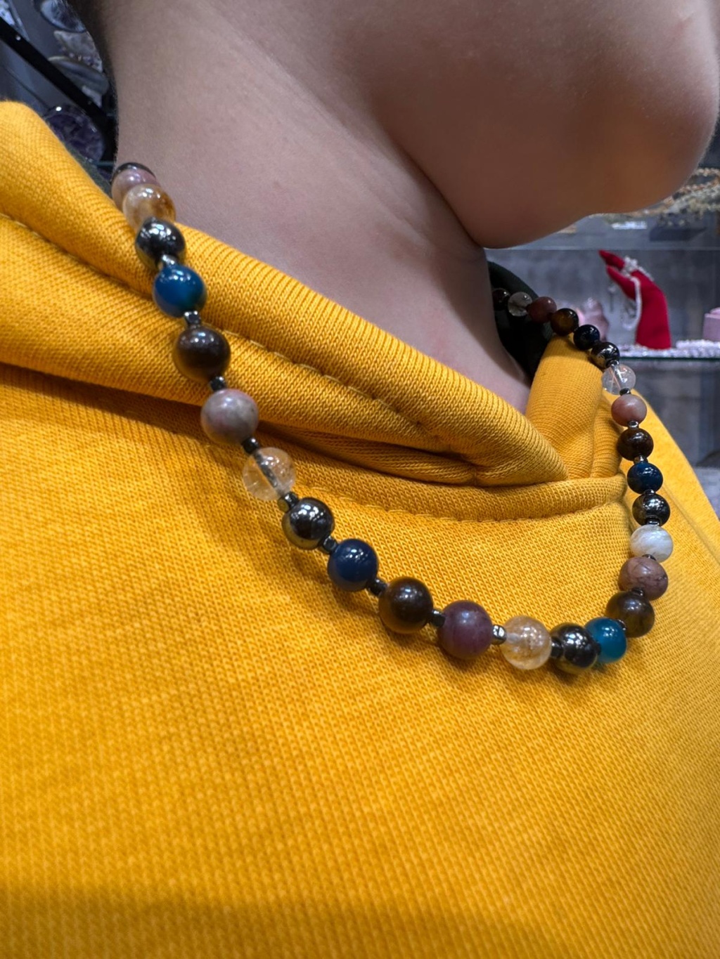 Ürün görselleri temsili olup, doğal taşların yapısı gereği taş dizilimi, renk tonları ve desenlerde farklılıklar görülebilir. Her kolye doğal ve kendine özgüdür.