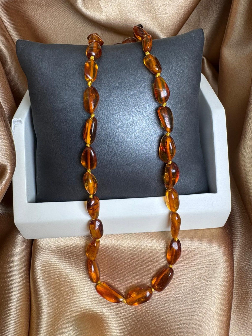 Ürün görseli temsili olup doğal taşların yapısı gereği renk tonlarında, diziliminde ve taş boyutlarında farklılıklar görülebilir. Her kehribar taşı doğanın sunduğu eşsiz bir form ve renge sahiptir. Bu nedenle gönderilen ürün ile görsel arasında ton ve dizilim açısından küçük farklılıklar olabilir.