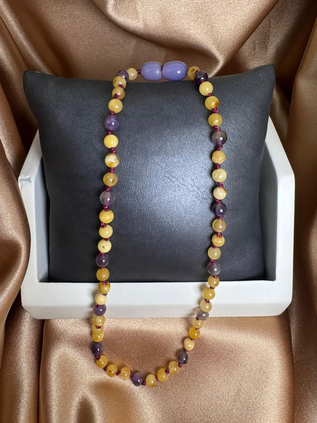 Ürün görseli temsili olup doğal taşların yapısı gereği renk tonlarında, diziliminde ve taş boyutlarında farklılıklar görülebilir. Her kehribar taşı doğanın sunduğu eşsiz bir form ve renge sahiptir. Bu nedenle gönderilen ürün ile görsel arasında ton ve dizilim açısından küçük farklılıklar olabilir.