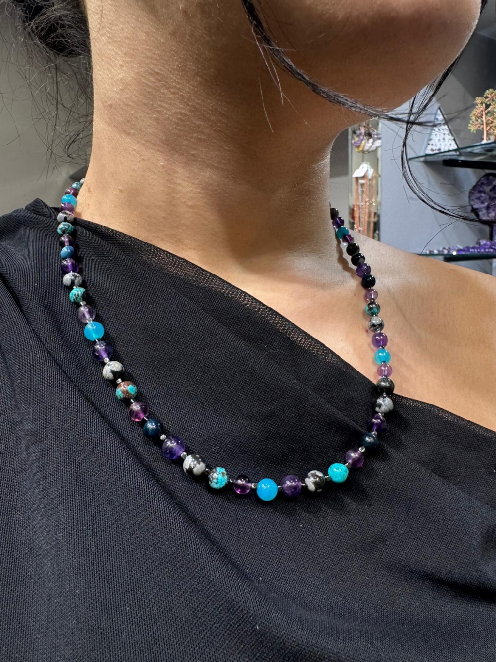Ürün görselleri temsili olup, doğal taşların yapısı gereği taş dizilimi, renk tonları ve desenlerde farklılıklar görülebilir. Her kolye doğal ve kendine özgüdür.