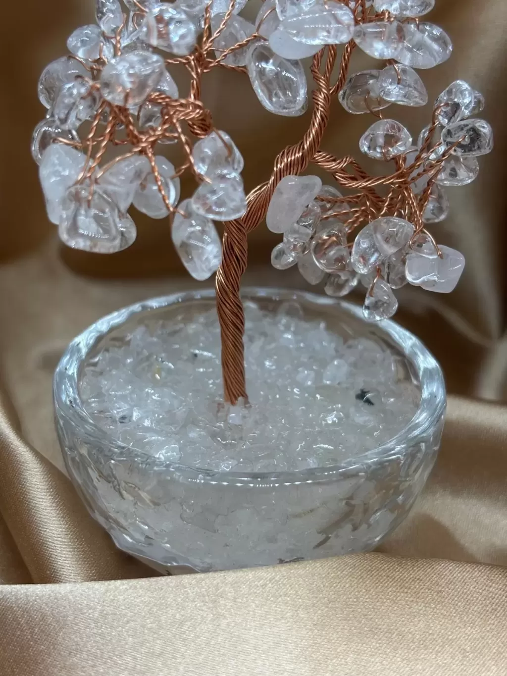 Kristal Kuvars Doğal Taş Ağaç Obje; saf, berrak ve yüksek titreşimli enerjiyi yaşam alanınıza taşıyan güçlü bir spiritüel dekoratif objedir. Kristal Kuvars, doğal taşlar arasında en güçlü enerji temizleyicilerden biri olarak kabul edilir ve tüm çakralarla uyumlu çalışır.