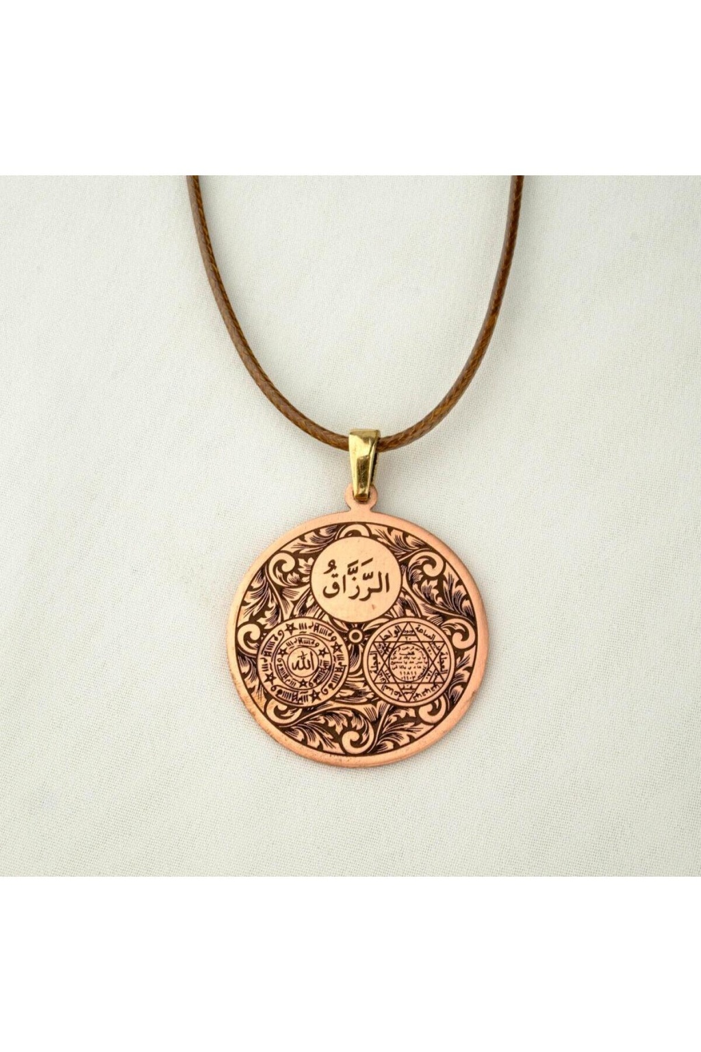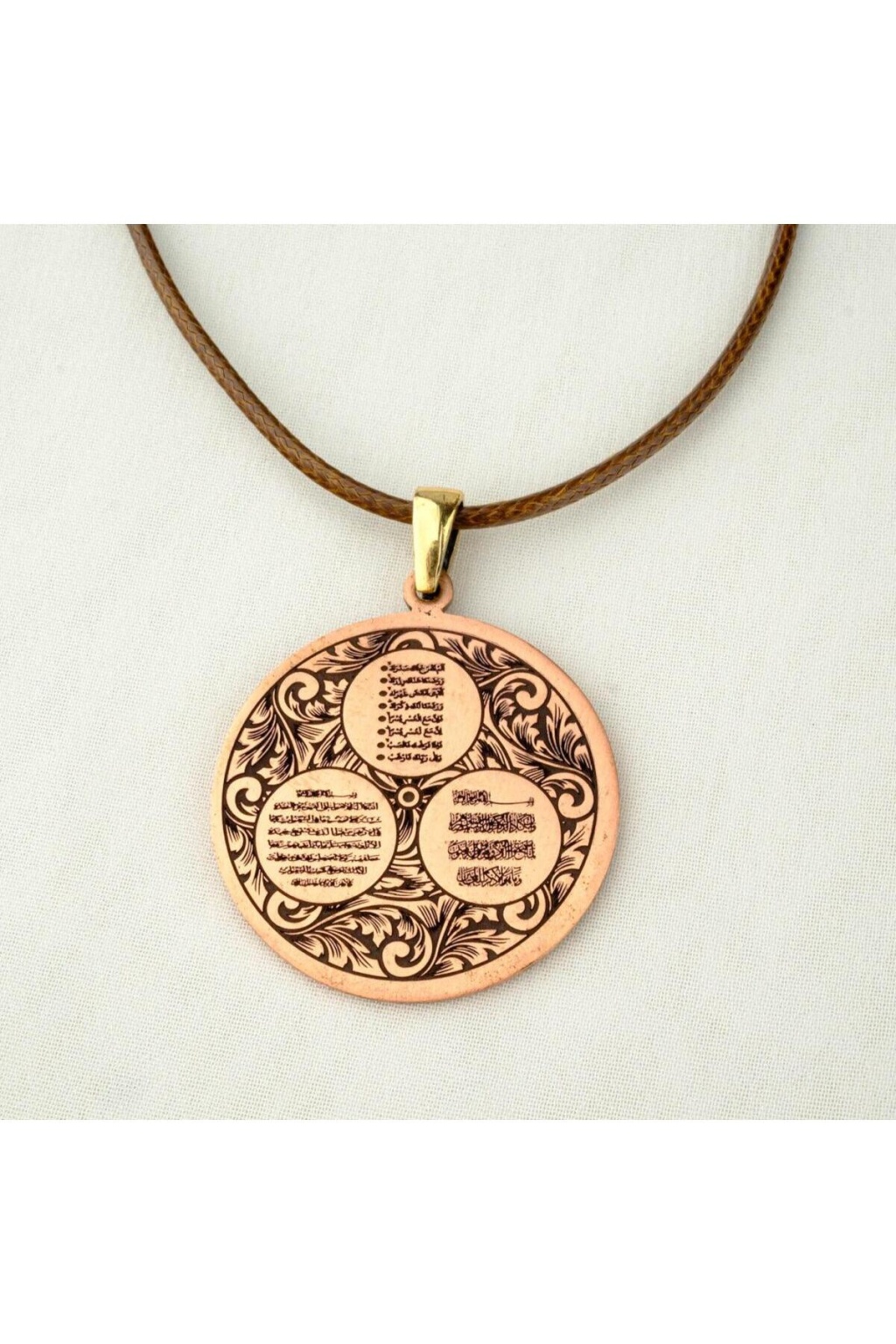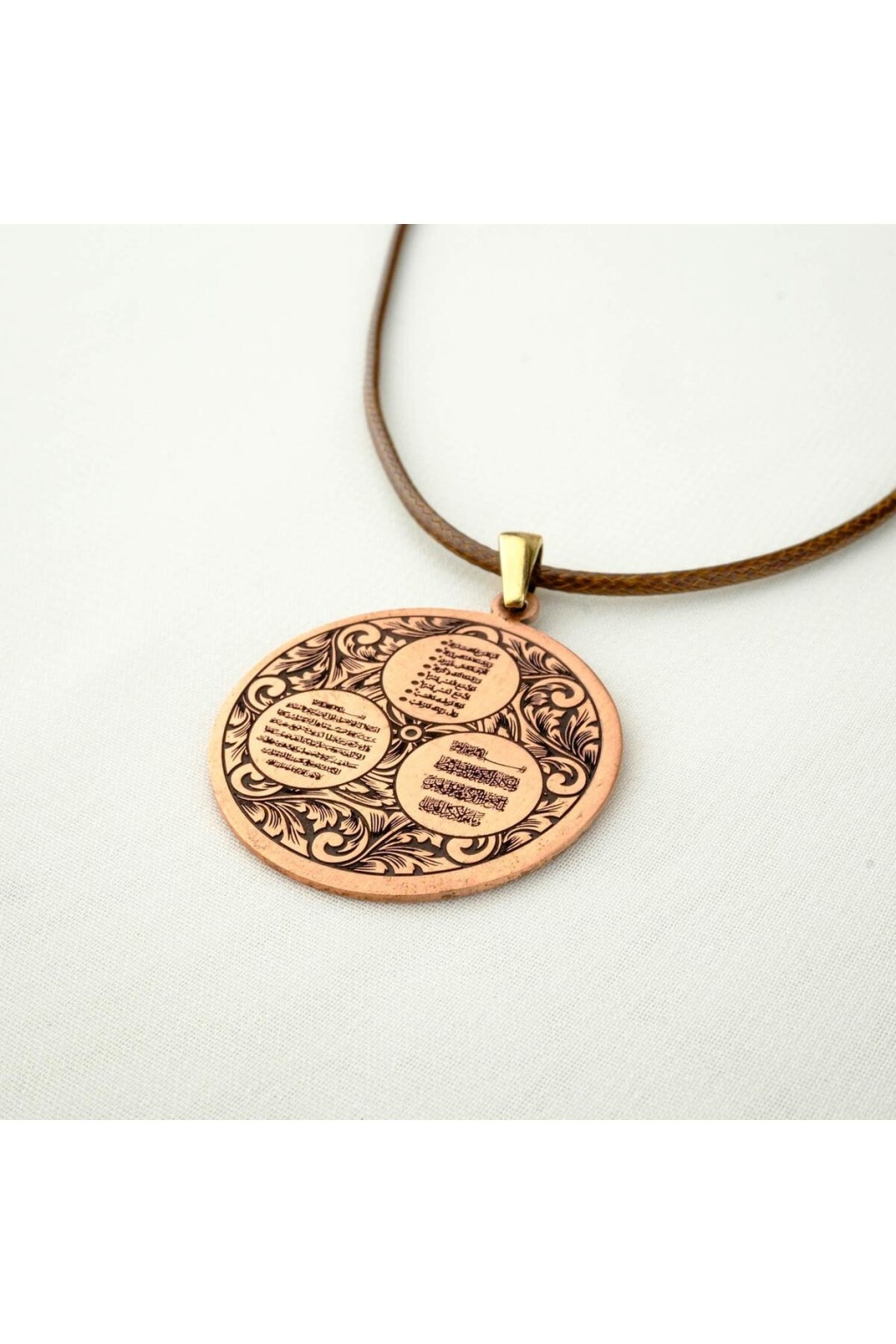 Koruma ve Dualı Bakır Gravür İşlemeli Kolye (3 cm çap)