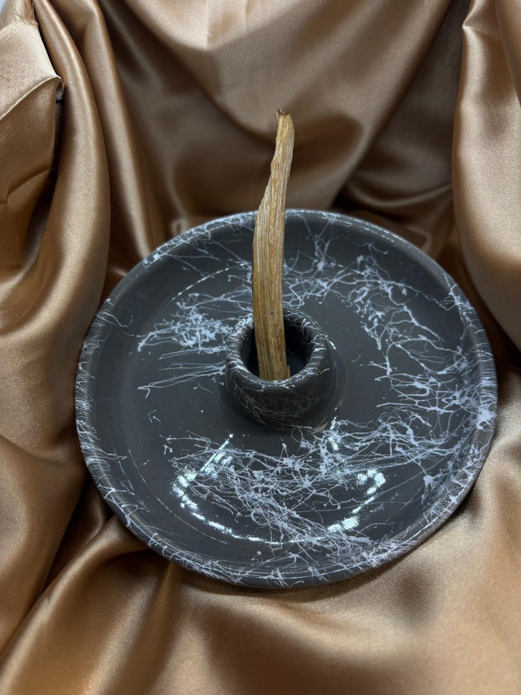 Palo Santo tütsülüğü, Palo Santo ağacı tütsülerinin güvenli ve dengeli şekilde kullanılmasını sağlayan özel tasarım bir tütsü aksesuarıdır. Yaşam alanlarında enerji temizliği, aura arındırma ve meditasyon çalışmalarında kullanılan Palo Santo tütsülerinin konforlu ve estetik bir şekilde yakılmasına yardımcı olur.