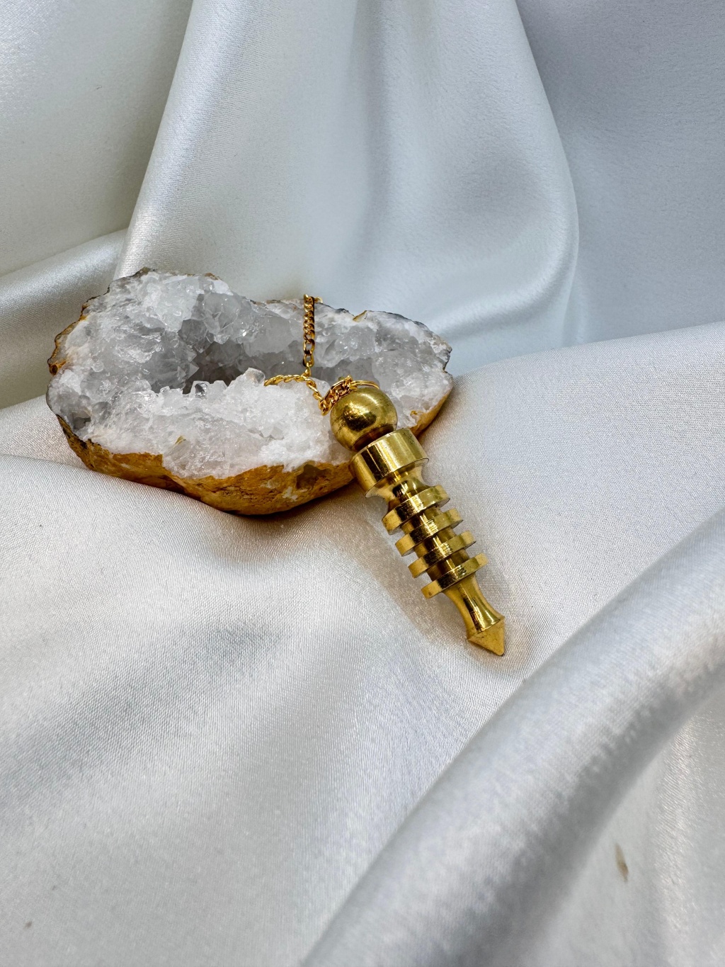 Pirinç Pandül (Sarkaç), enerji ölçümü, aura analizi ve çakra çalışmaları için kullanılan, iletkenliği yüksek ve dayanıklı bir radyestezi aracıdır. Pirinç materyal, enerji akışını net şekilde iletmesiyle bilinir ve bu özelliği sayesinde pandül çalışmalarında stabil ve tutarlı tepkiler alınmasına yardımcı olur.