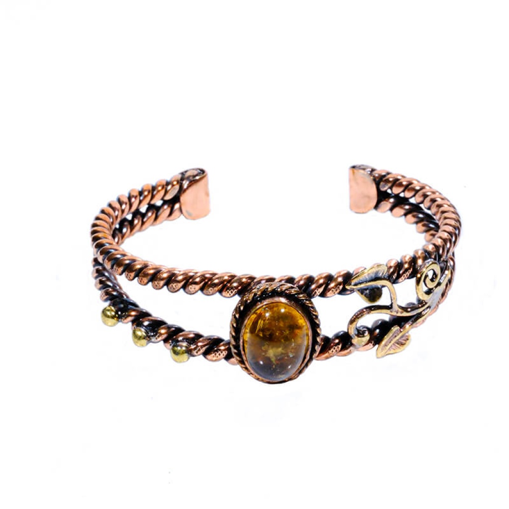 Bakırın iletken yapısı ile sitrinin canlandırıcı frekansı birlikte çalışarak, bilekliğin enerjisinin daha dengeli ve akışkan hissedilmesine yardımcı olur.