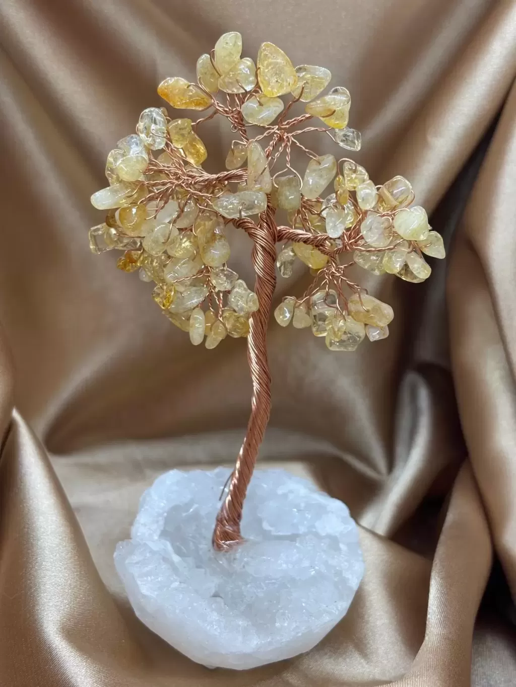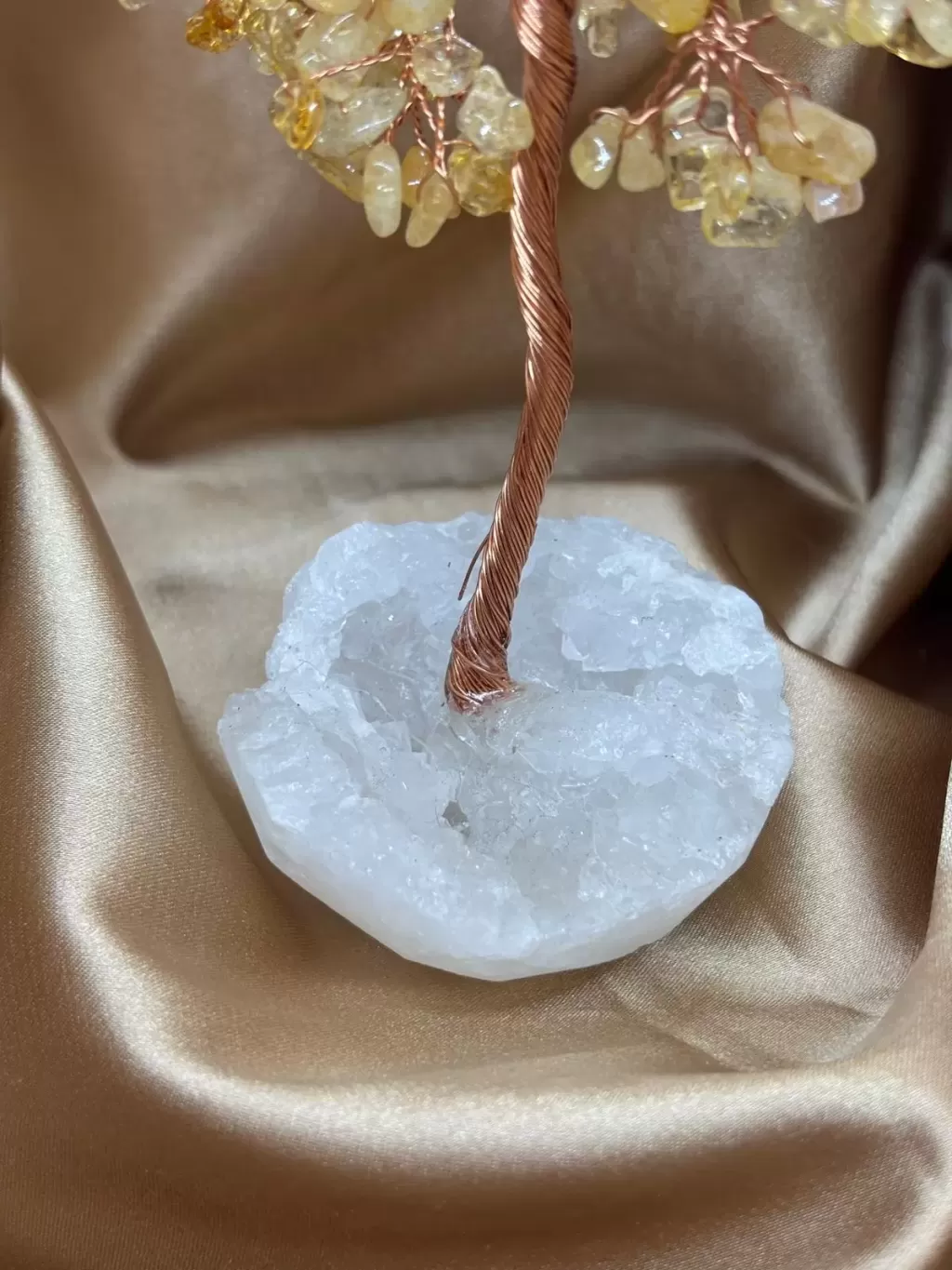 Ağaç formu; köklenmiş güç ve yukarı doğru büyüyen başarı enerjisini temsil eder. Kristal zemin enerjiyi sabitlerken, Sitrin dalları bereket frekansını yayar. Bu yapı hem maddi hem manevi yükselişi simgeler.
