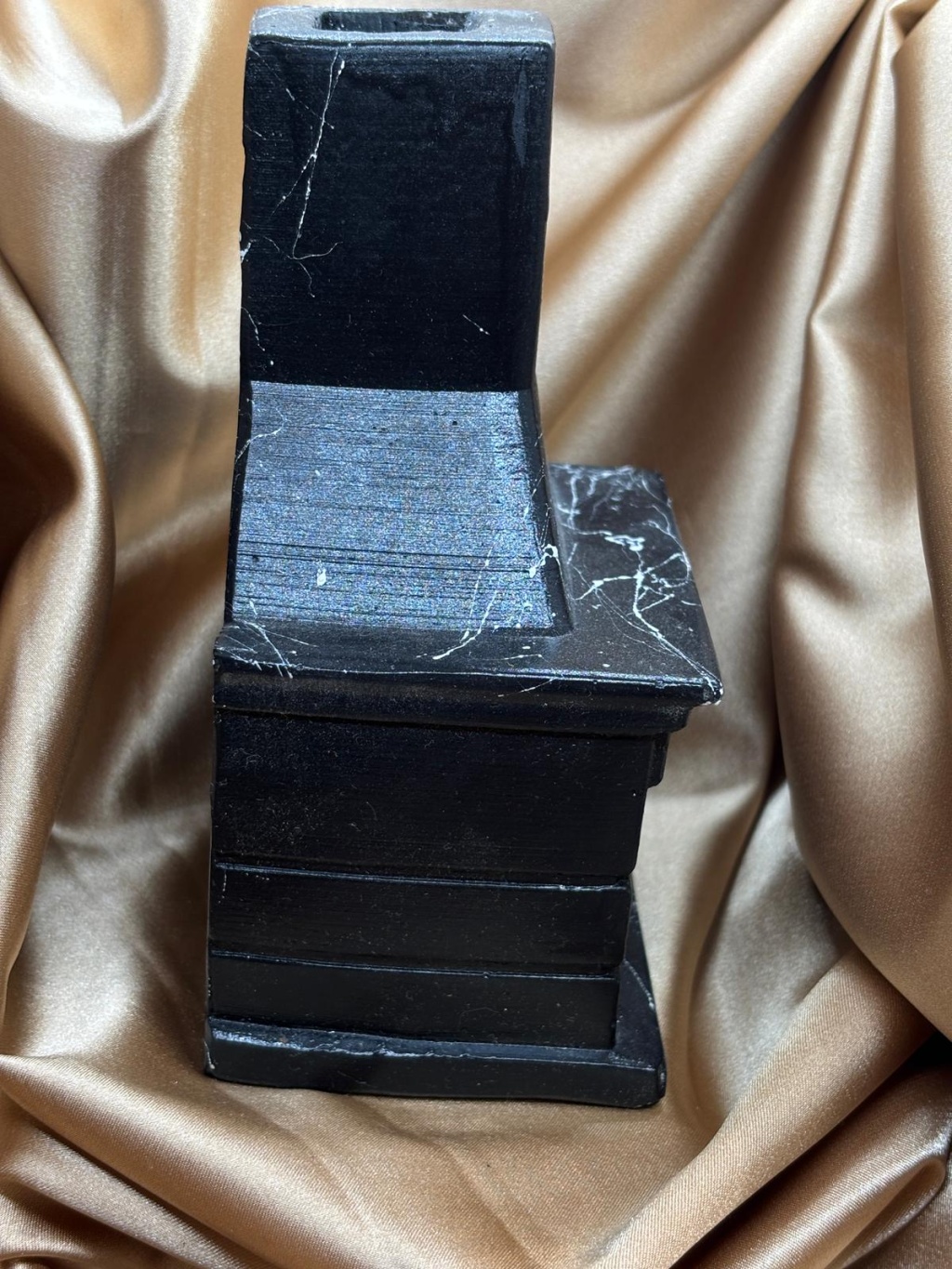 Şömine model tütsülük, yaşam alanlarında sıcak ve mistik bir atmosfer oluşturmak için tasarlanmış dekoratif ve fonksiyonel bir üründür. Şömine formundaki özel tasarımı sayesinde tütsü kullanımı sırasında ortaya çıkan duman, şömine içinden yükselerek görsel olarak etkileyici bir deneyim sunar. Hem estetik hem de enerjisel çalışmalar için tercih edilen bir modeldir.