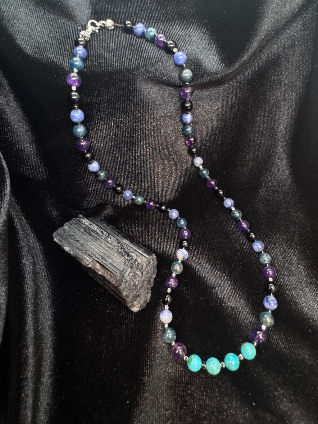 Bu kolye özellikle boğaz çakrası, üçüncü göz çakrası ve kök çakra üzerinde çalışarak Yay burcunun enerjisini dengelemeyi, zihinsel açıklığı artırmayı ve aurayı güçlendirmeyi amaçlar. Özgürlük arayışı ile içsel denge arasında uyum kurmaya destek olur.