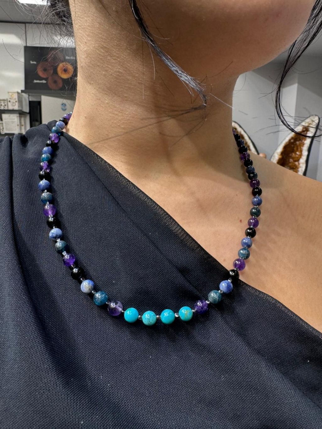 Ürün görselleri temsili olup, doğal taşların yapısı gereği taş dizilimi, renk tonları ve desenlerde farklılıklar görülebilir. Her kolye doğal ve kendine özgüdür.