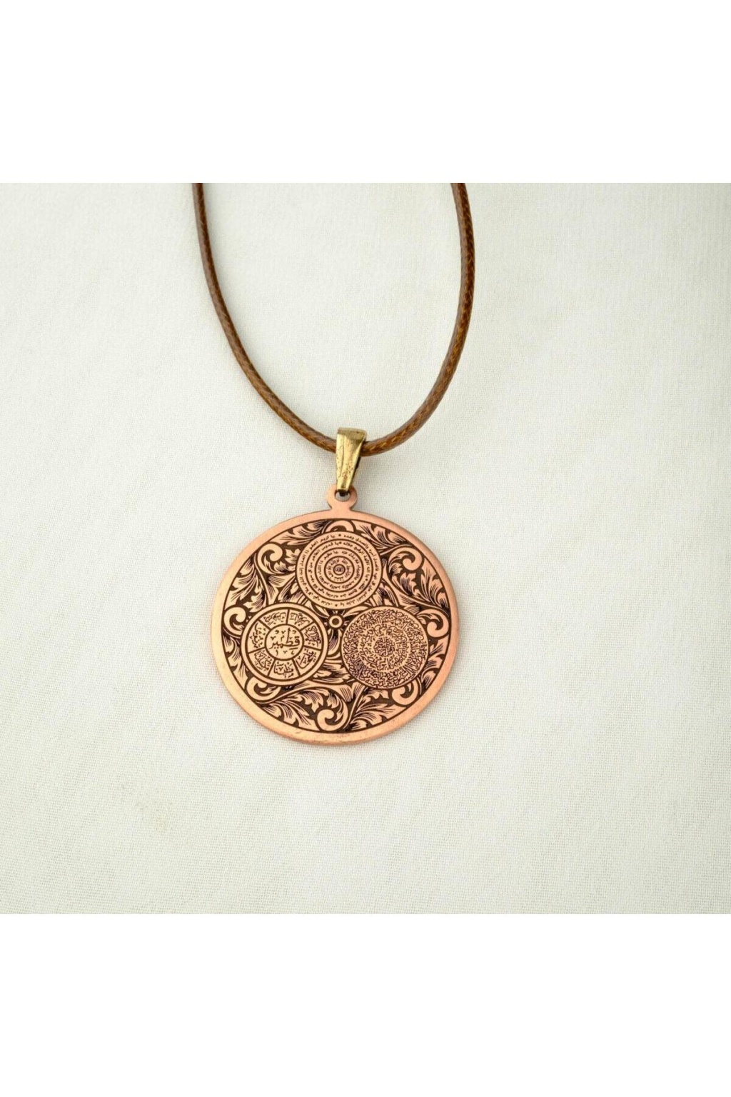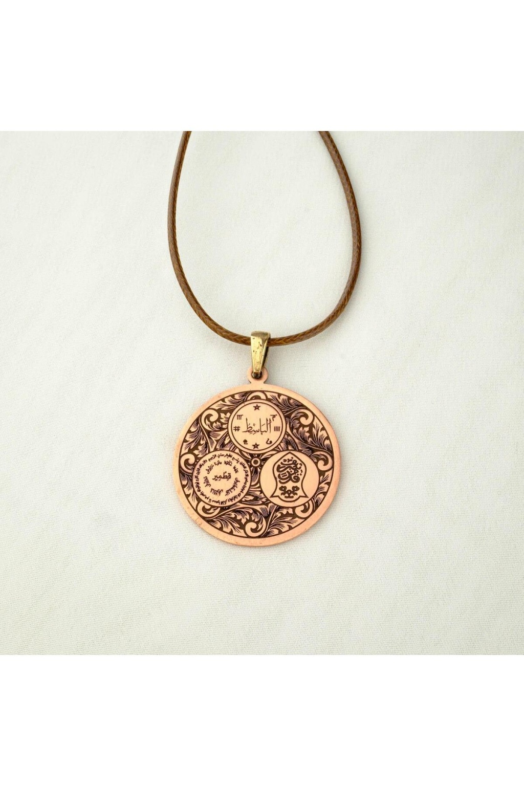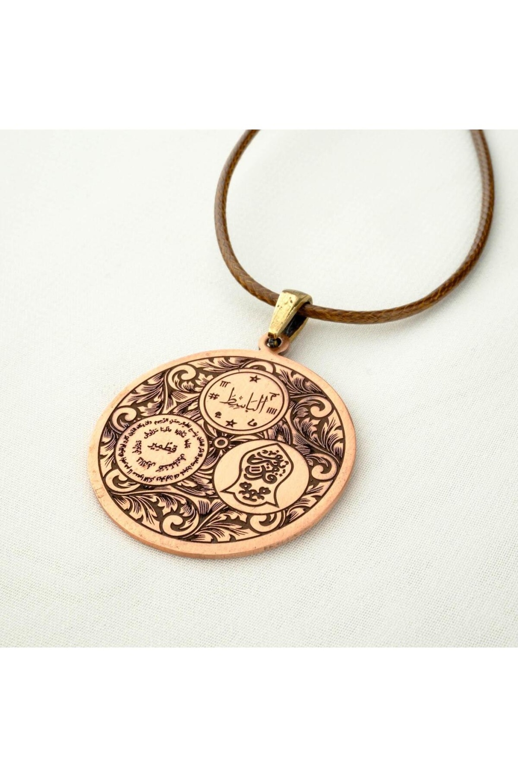 Koruma ve Dualı Bakır Gravür İşlemeli Kolye (3 cm çap)