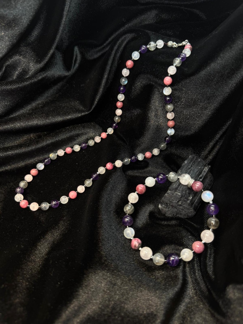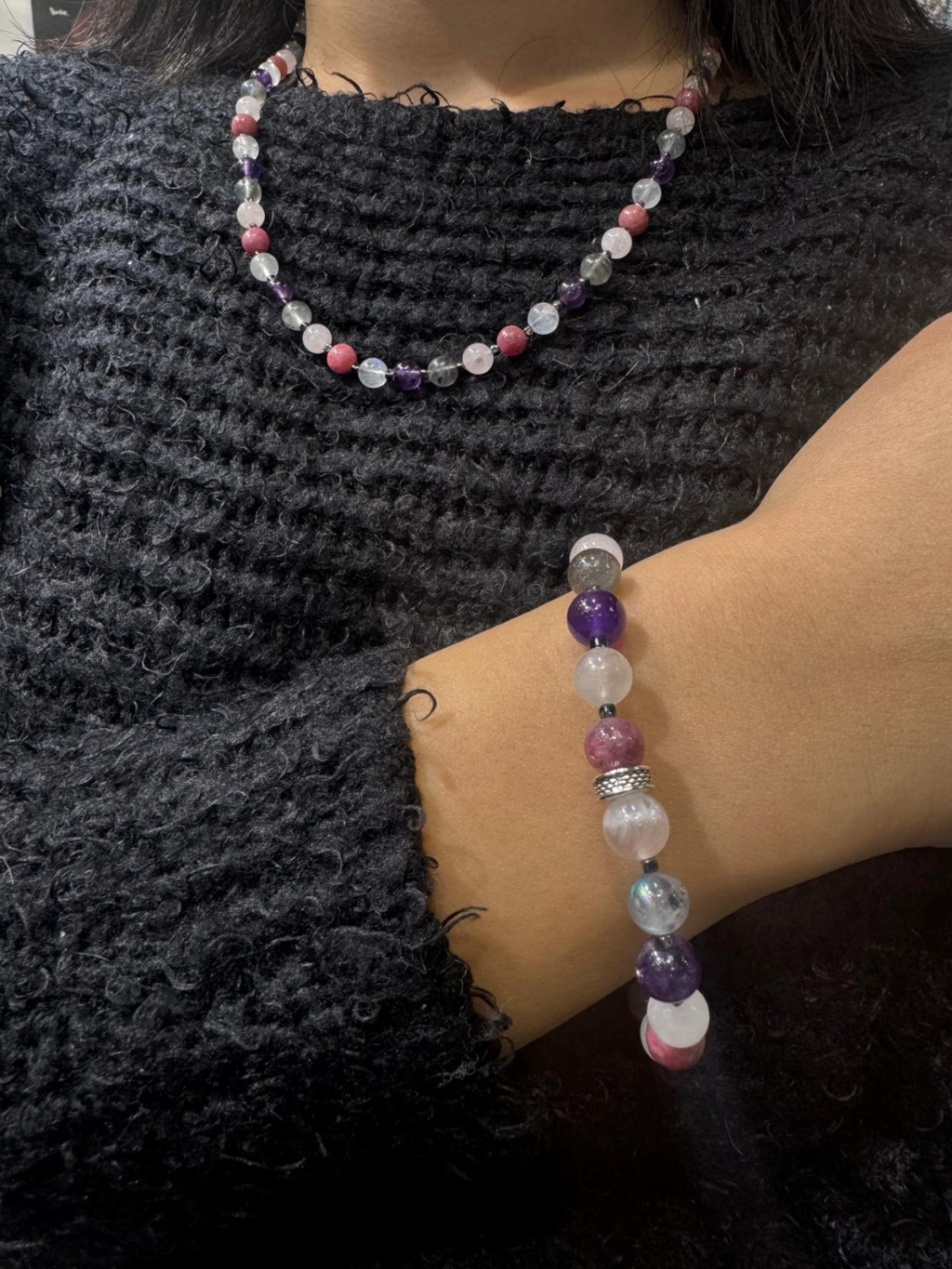 Bu bileklik ve kolye özellikle kalp çakrası, sakral çakra, üçüncü göz çakrası ve taç çakra üzerinde çalışarak Yengeç burcunun duygusal ve sezgisel enerjisini dengelemeyi amaçlar. Aura uyumunu desteklerken içsel huzurun güçlenmesine katkı sağlar.