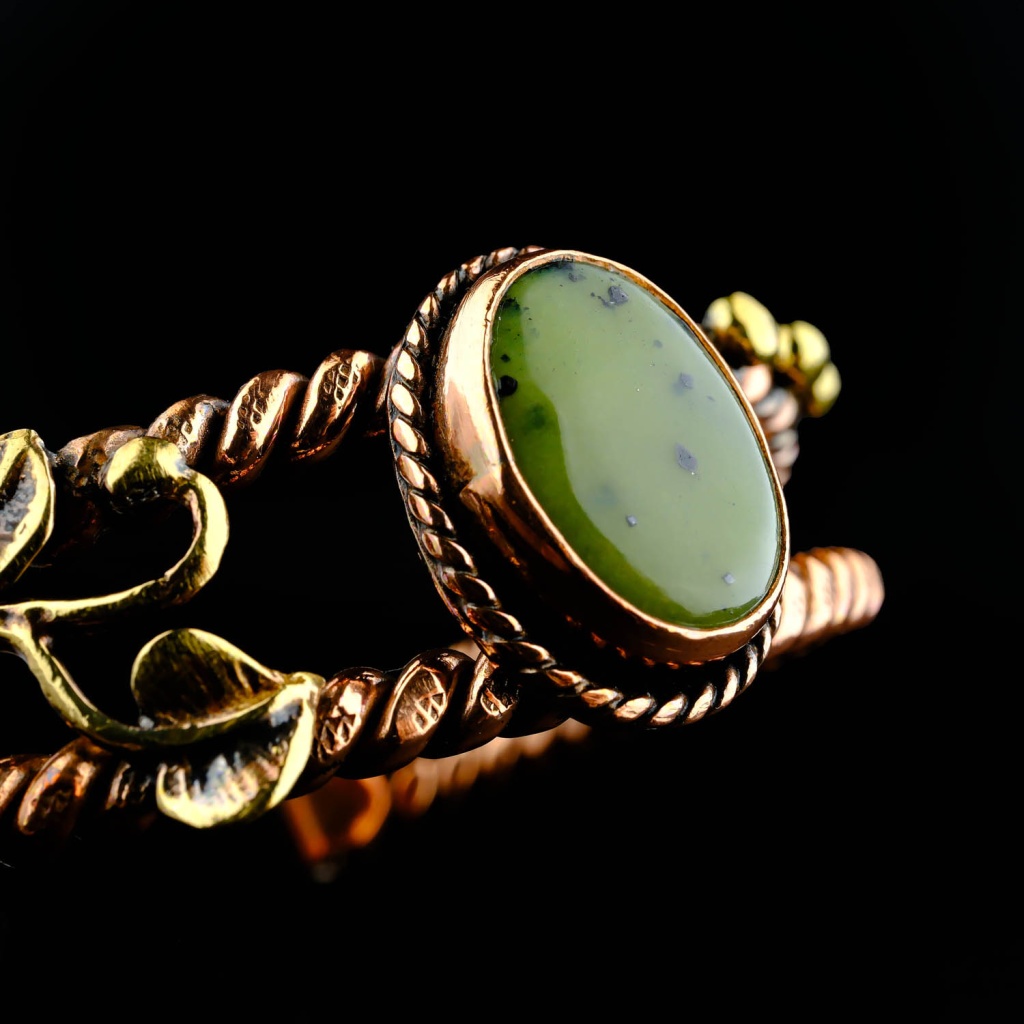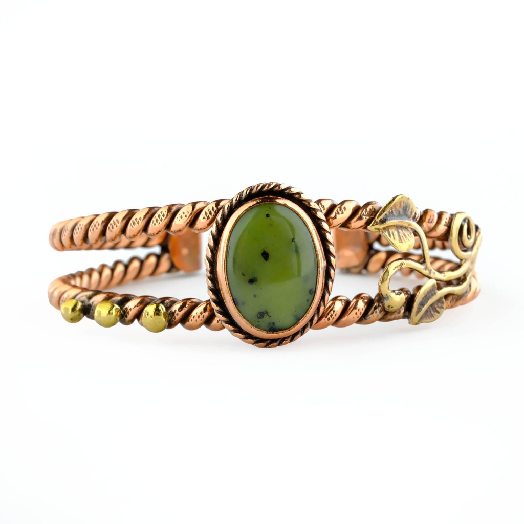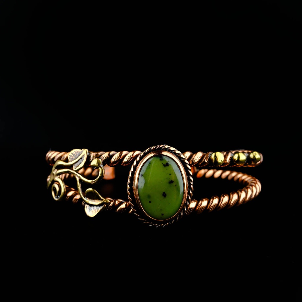 Bakırın iletken yapısı ile yeşim taşının huzur veren frekansı birlikte çalışarak, bilekliğin enerjisinin daha dengeli ve akışkan hissedilmesine yardımcı olur.